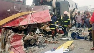 বার্তা৭১ ডটকমঃ ঢাকা-সিলেট মহাসড়কের রশিদপুরে এনা পরিবহন ও লন্ডন এক্সপ্রেসের মুখোমুখি সংঘর্ষে কমপক্ষে ১১ জন নিহত হয়েছেন। এ ঘটনায় দুই বাসের আরো অর্ধশতাধিক যাত্রী আহত হয়েছেন বলে জানা গেছে।