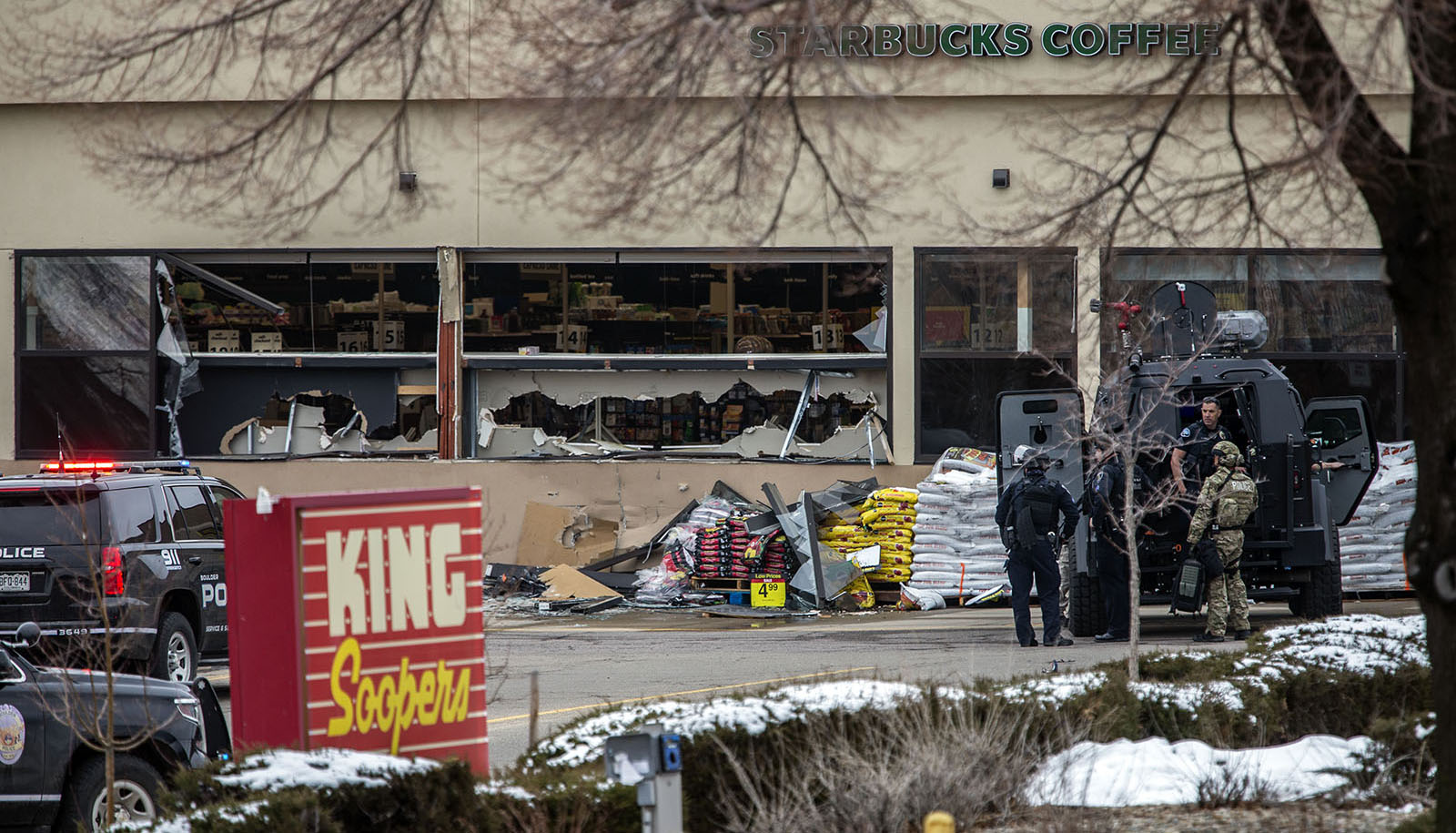 প্রাথমিকভাবে কিং সোপার্স সুপারমার্কেট নামে ওই স্টোরে অভিযুক্ত বন্দুকধারীর গুলিতে এক পুলিশ কর্মকর্তা নিহত হয়েছিলেন বলে জানিয়েছিল আইনশৃঙ্খলা রক্ষাকারী বাহিনী। অন্য এক জ্যেষ্ঠ পুলিশ কর্মকর্তা জানিয়েছেন, এআর-১৫ স্টাইলের রাইফেল ব্যবহার করে এই হামলা চালানো হয়েছে।