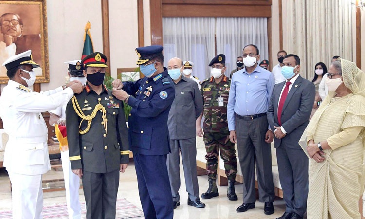 আজ বৃহস্পতিবার (২৪ জুন) সকালে গণভবনে প্রধানমন্ত্রী শেখ হাসিনার উপস্থিতিতে তিনি জেনারেল র্যাংক ব্যাজ পরেন।
